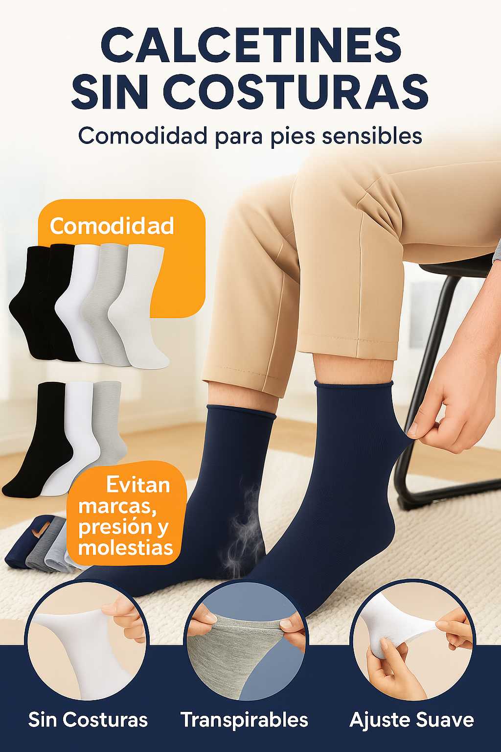 Sin Costuras o Costuras Planas: Los calcetines convencionales suelen tener costuras gruesas que pueden rozar y causar ampollas o llagas. Los calcetines para diabéticos carecen de costuras o las tienen planas y exteriores, eliminando puntos de presión que puedan dañar la piel sensible.