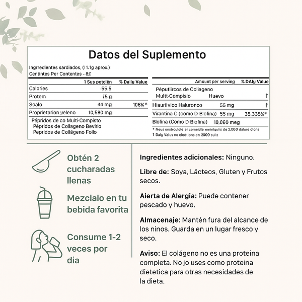 Mezcla una cucharada en tu bebida favorita diariamente para obtener mejores resultados en la piel.